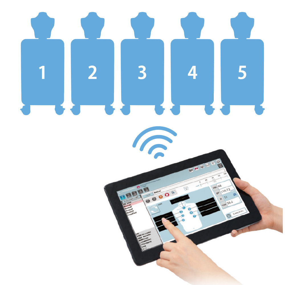 - La pantalla de diseño simple proporciona una comprensión inmediata de las ondas respiratorias, la frecuencia cardíaca, la presión arterial, la frecuencia respiratoria y la temperatura.