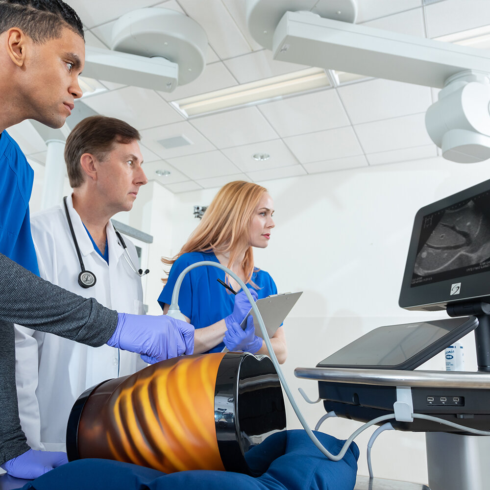 Fantoma de ultrasonido abdominal con patologías. Unico fantoma de ultrasonido abdominal de alta fidelidad que facilita el entrenamiento efectivo compatible con aparatos de ultrasonido reales