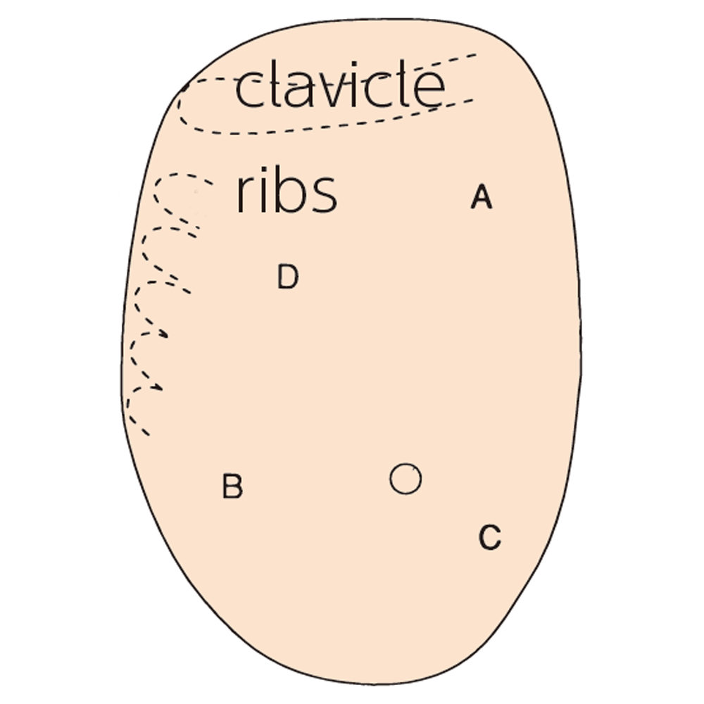 - Puntos de referencia óseos para la palpación: clavícula y costillas.