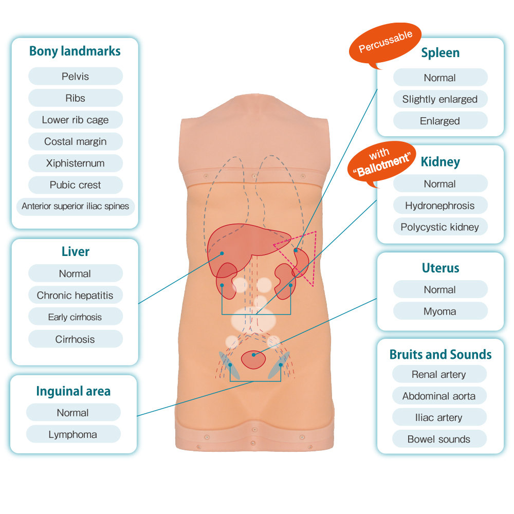 Representación fiel de las características táctiles de los órganos abdominales, que son lo suficientemente convincentes como para servir como punto de referencia en el cultivo del sentido del tacto.