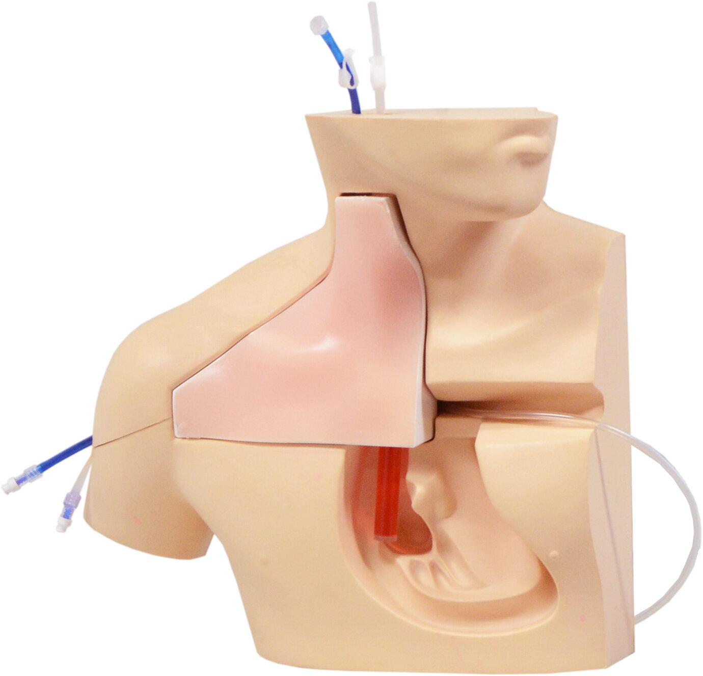 - La almohadilla de simulación sin fricción, similar al tejido, facilita la sensación realista de la colocación del CVC.