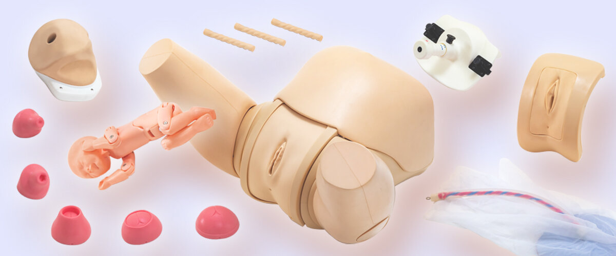 Kit completo para el cuerpo materno para el entrenamiento de habilidades en exámenes vaginales durante el parto y el nacimiento.