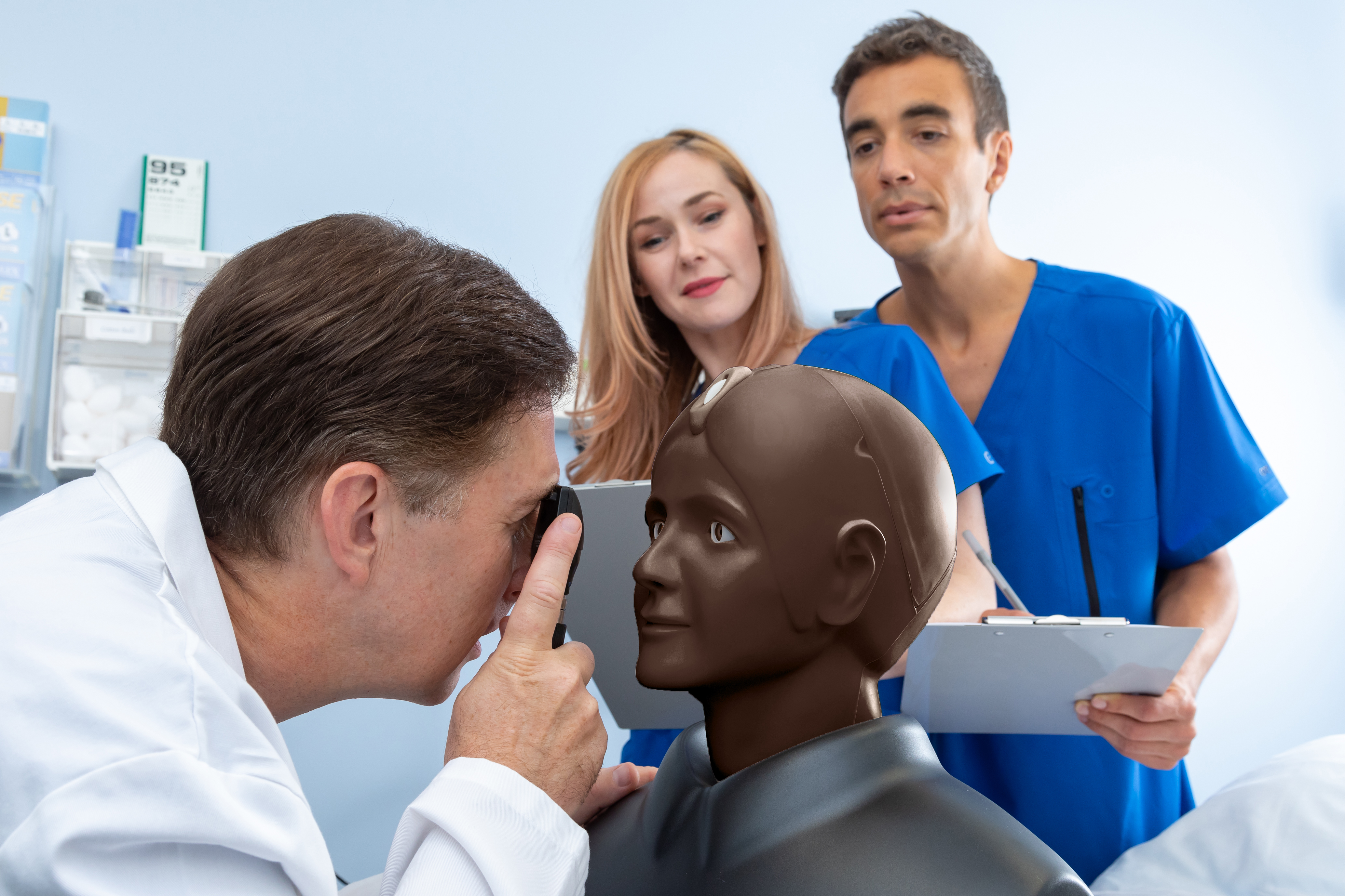 - Unidades de globo ocular equipadas con lentes que simulan el eje visual del ojo humano