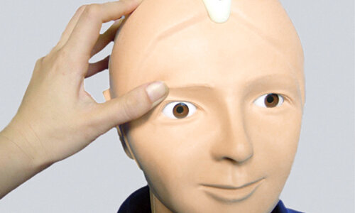 - Practique cómo posicionar su mano subdominante y su cuerpo contra el paciente.